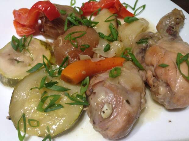 Вместе с перечисленными достоинствами оно полезное, яркое и сытное. Не могу не заметить, что мясо и овощи готовятся в собственном соку без добавления воды, поэтому требует минимум соли.Все овощи и фрукты кладутся большими кусками – это важно! В этом вся “соль”!
