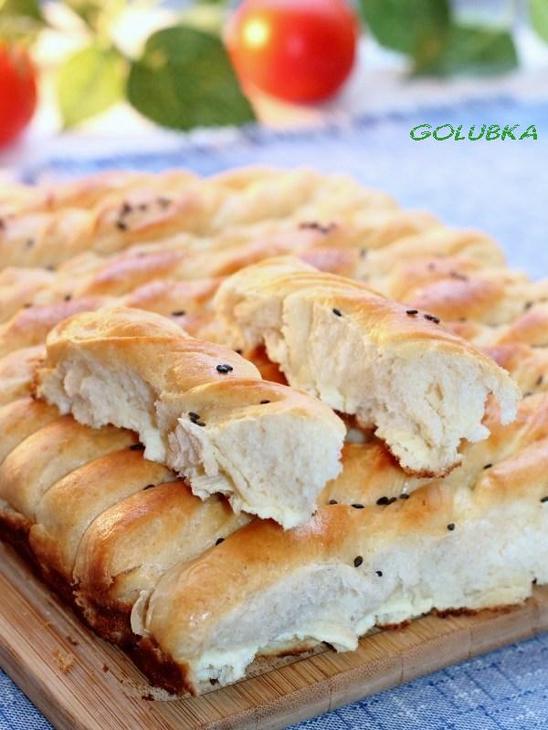 19. Пирог можно приготовить сладкий и не сладкий. Все зависит от заливки. Исключаете из заливки сахар и добавляете по вкусу соль. В несладкий пирог можно положить например: тонкую полоску грудинки или бекона и скрутить вместе с тестом. Экспериментируйте. Муки у меня ушло на опару и на замес ровно 250 г. Тесто очень хорошее и я не припыляла мукой столешницу.
