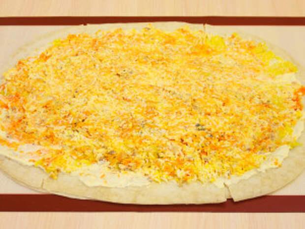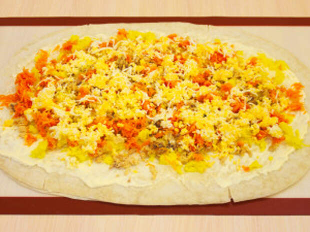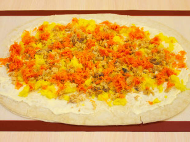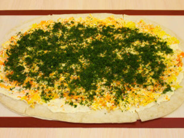 Можно начинку приготовить заранее, а перед подачей быстренько завернуть ее в лаваш.
