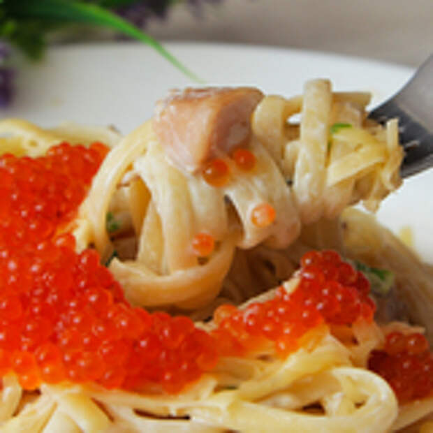 Готовую пасту добавляем в соус с рыбой, перемешиваем и готовим еще минут 5.