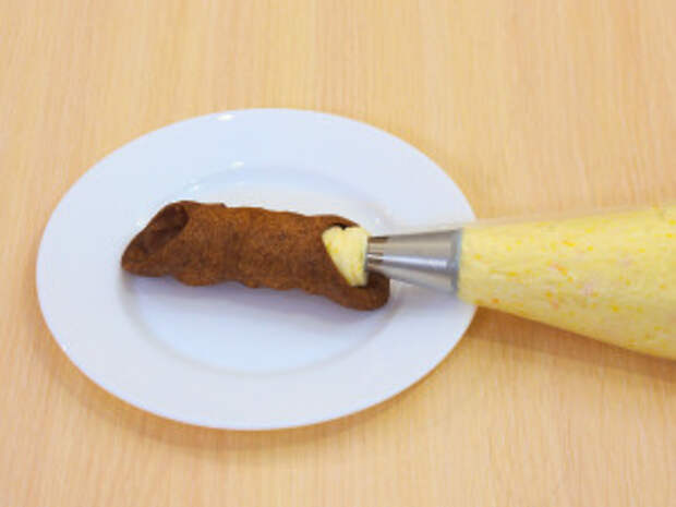 Наполнять кремом трубочки желательно перед подачей, чтобы они дольше оставались хрустящими.