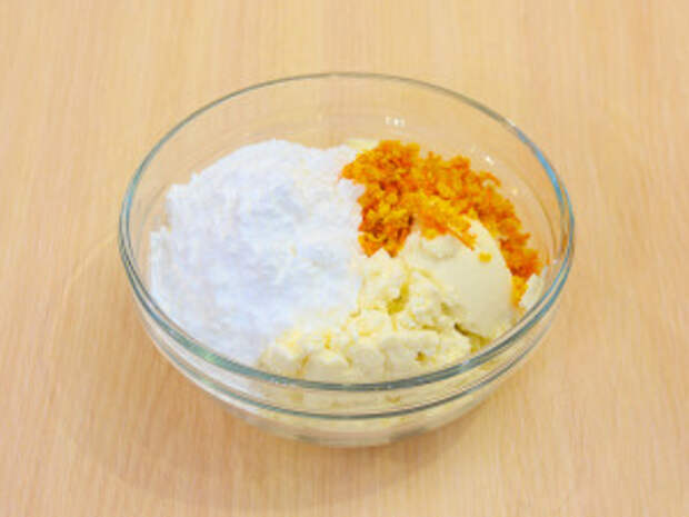 К рикотте добавить сахарную пудру, цедру.