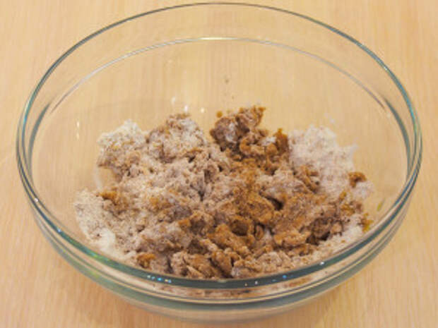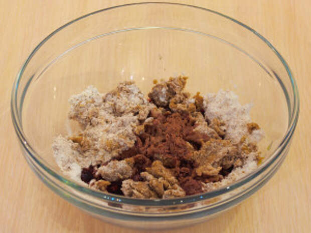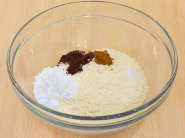 К муке добавить сахарную пудру, какао, корицу, соль.