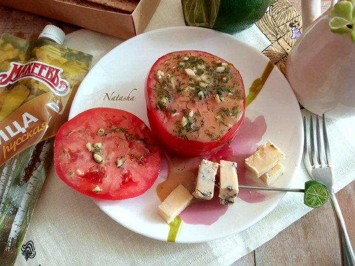 6. Если вы будите делать помидоры на праздничный стол, то их лучше сразу делать побольше и выкладывать на большое блюдо и из холодильника сразу выставлять на стол.