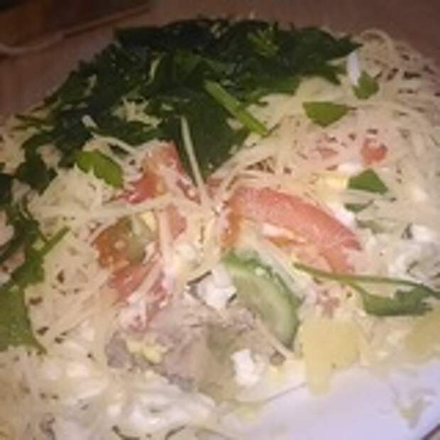 Натираю картофель ,это первый слой, далее скумбрию разминаю, выкладываю 2 слой, огурцы-3 слой,яйца-4 слой,майонез,помидор, сыр на тёрке, зелень. Все подробности смотрите в мини видео.