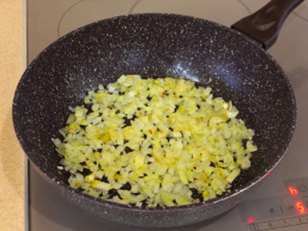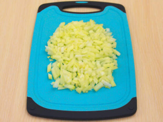 Лук мелко нарезать.