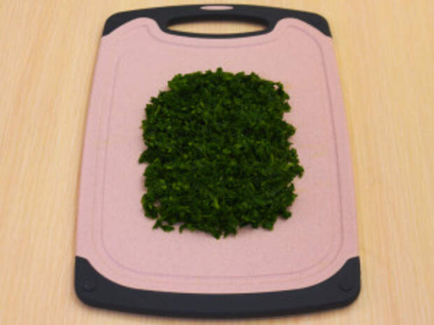 Зелень мелко нарезать.