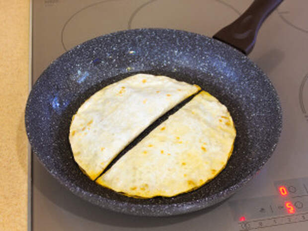 Из лаваша вырезать круги диаметром 20–22 см.