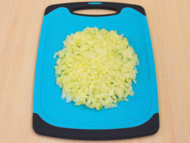 Лук мелко нарезать.