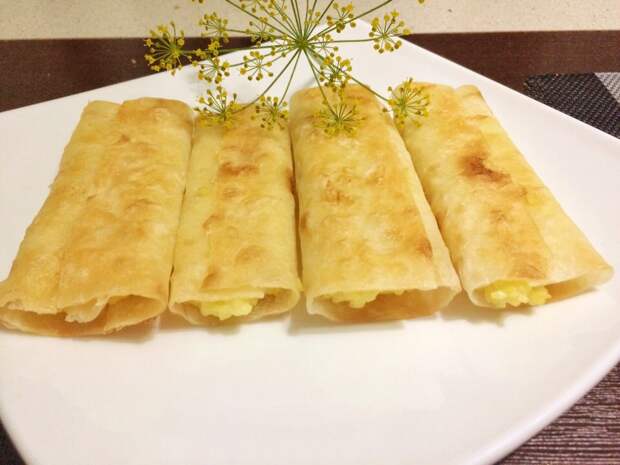 5. Готовые трубочки http://www.syuyumbike.ru/hatyn-kyz-galeme/ash-su/vypechka?id=7843 из лаваша украшаем зеленью или цветом укропа. Подаем со сметаной или к чаю.